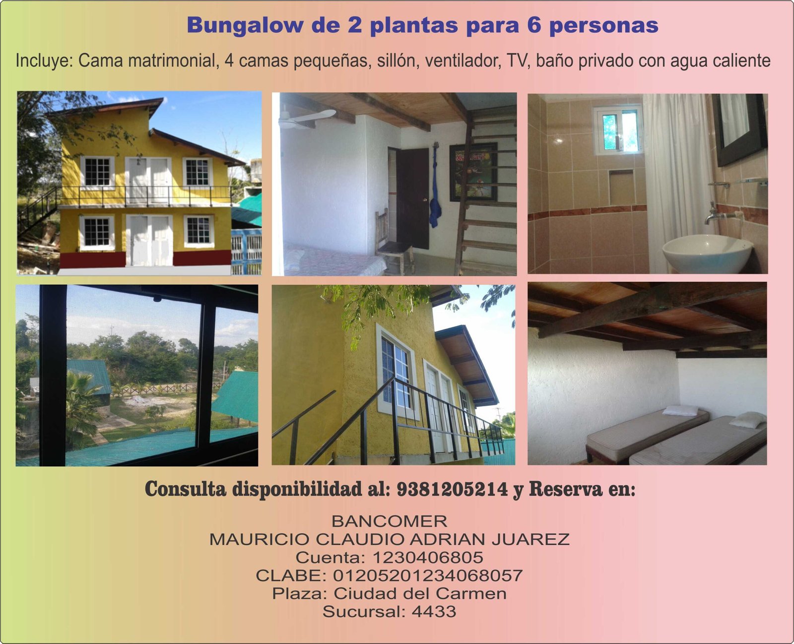 Noche en Boungalow de 2 plantas para 6 personas: 1000$