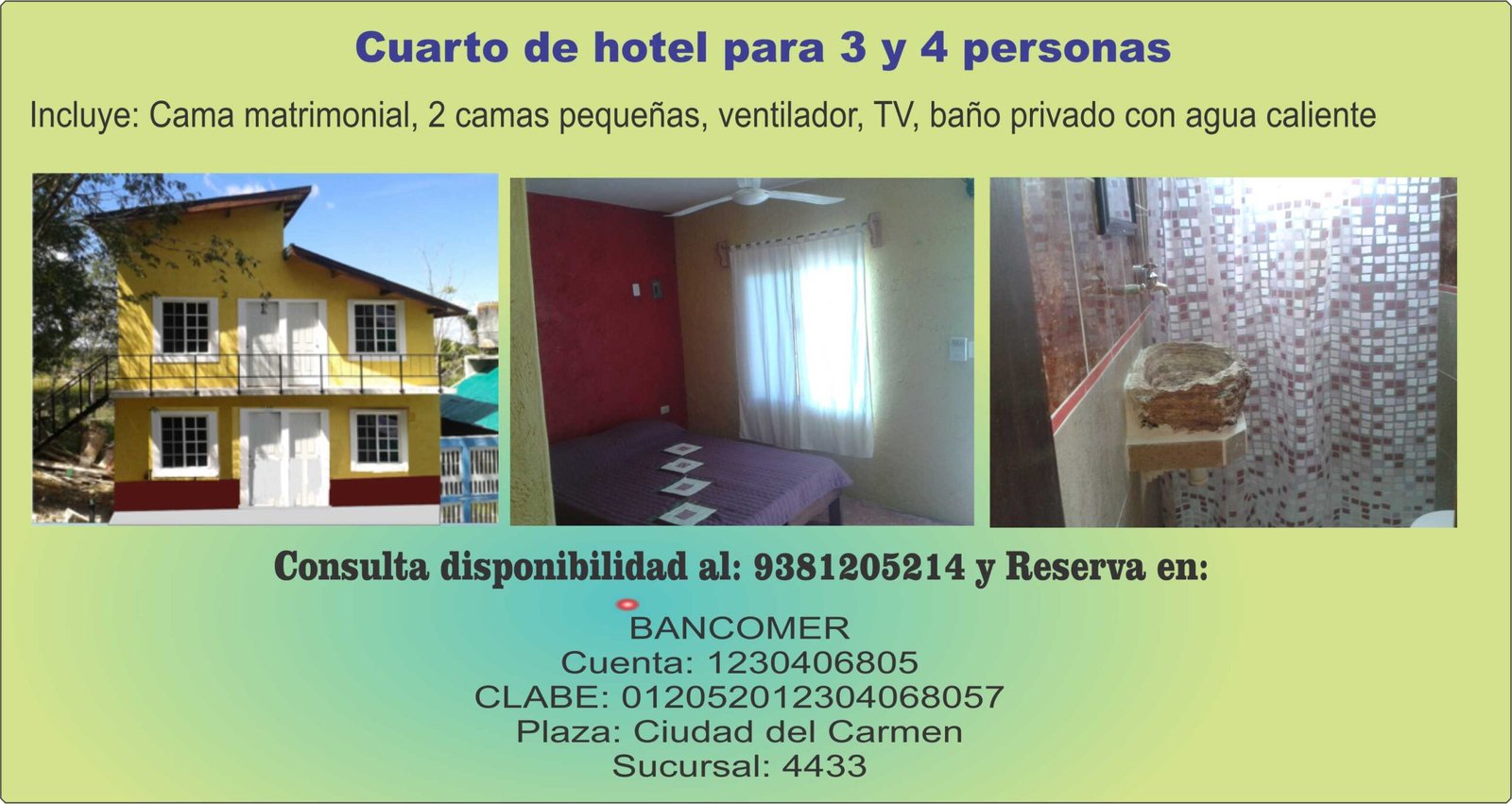 Noche de Hotel habitación cuadruple: 650$