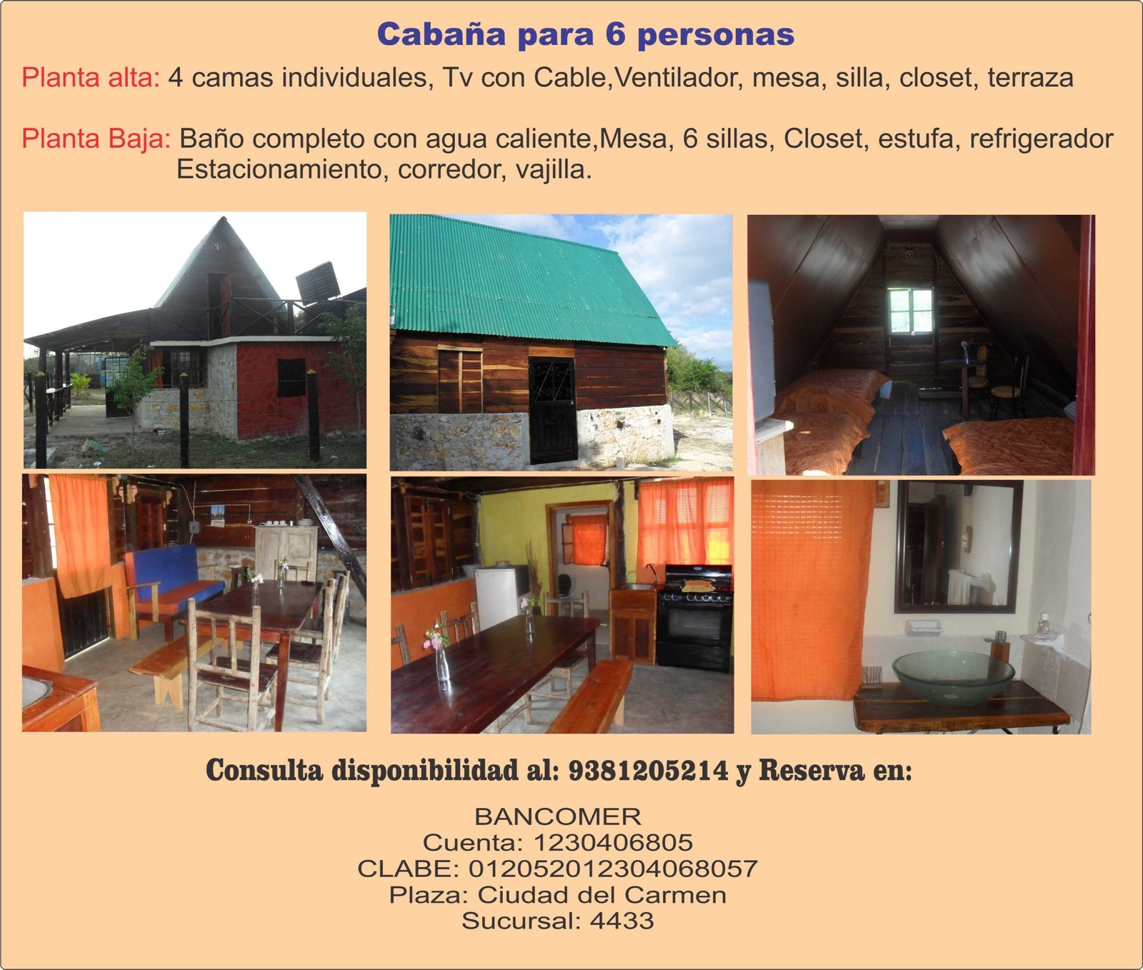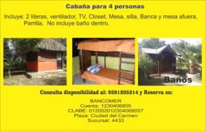 Cabaña para 4 personas. 500$ por noche.