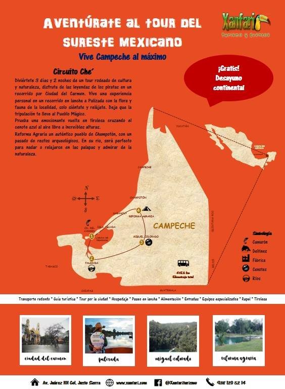 Diviértete 3 días y 2 noches de un tour rodeado de cultura y naturaleza, disfruta de las leyendas de los piratas en un recorrido por Ciudad del Carmen. Vive una experiencia personal en un recorrido en lancha a Palizada con la flora y fauna de la localidad, solo siéntate y relájate. Deja que la tripulación te lleve al Pueblo Mágico.